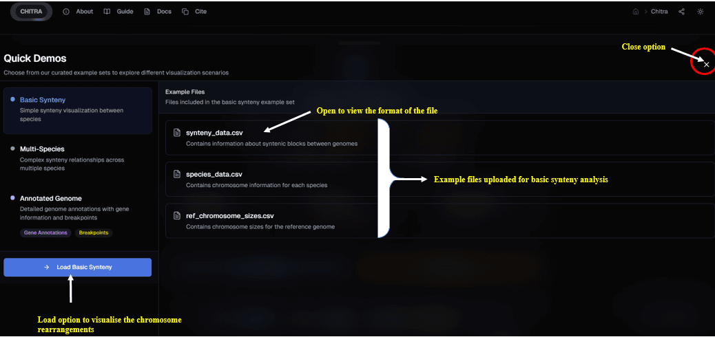 CHITRA includes pre-loaded example datasets to help users explore its functionality. Three types of example datasets are available: